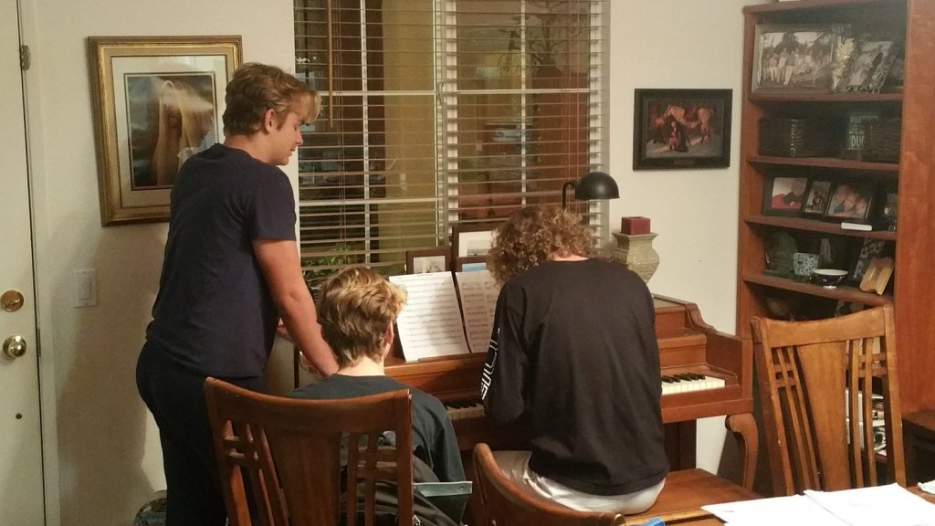 Scott Spurgiesz called and said Music Pillars would like to hire Tyler, Rick, and Jefferson to complete the musical. Rick diverted his portion to a future team member, but nothing like a financial incentive to accelerate a project and pull Jefferson onto the team. An electric piano was borrowed from Music Pillars and they now had another song writer creating music. Jefferson began each song by sitting down with his dad and talking about the tone, rhythm, message and feeling of the piece. Then he would sit at the piano, half naked, with nothing but his phone, and compose. It was inspiring to watch! It Isn’t Real.